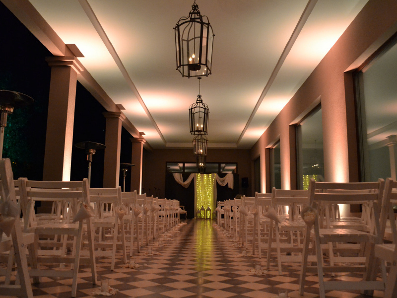 Más de 2.200 m2 cubiertos: Donde encontramos espacios como el Hall de Acceso, Lobby, Livingroom para adultos y Suite de Novia. Asimismo existe una sala para el novio y sus amigos, antesala a toilettes de damas, y un Playroom equipado para niños. Debemos destacar el salón Principal y el salón Recepción.